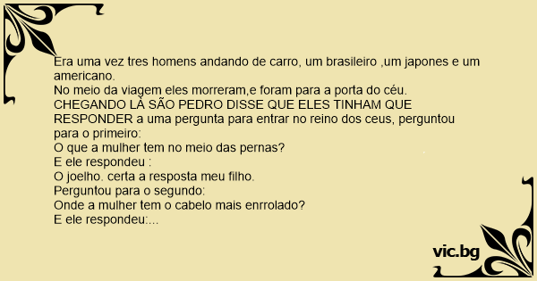 Era uma vez tres homens andando de carro, um brasileiro ,um japones e um americano.