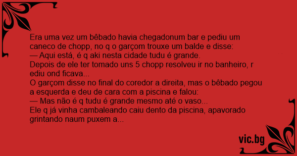 Era uma vez um bêbado havia chegadonum bar e pediu um caneco de chopp, no q o garçom trouxe um balde e disse: