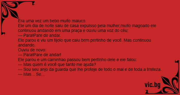 Ele um dia de noite saiu de casa expulsso pela mulher,muito magoado ele continuou andando em uma praça e ouviu uma voz do céu: