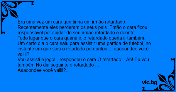Vou assisti o jogo! - respondeu o cara O retartado... Ah! Eu vou também No dia seguinte o retardado ...