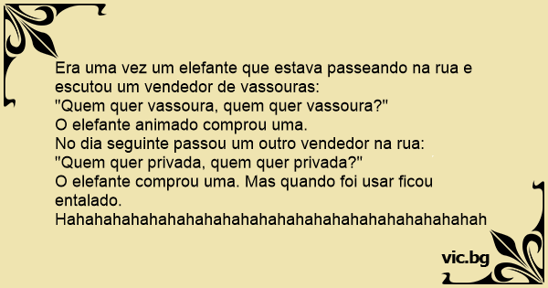Era uma vez um elefante que estava passeando na rua e escutou um vendedor de vassouras: