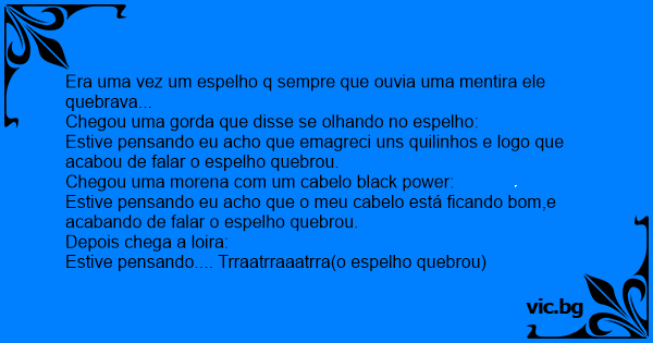 Era uma vez um espelho q sempre que ouvia uma mentira ele quebrava...