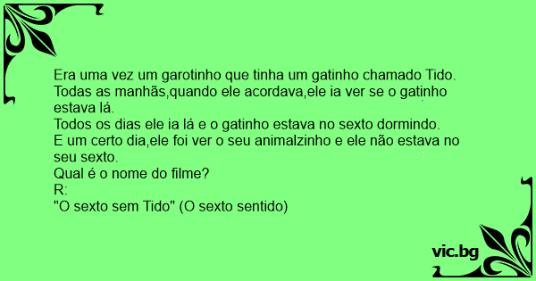 E um certo dia,ele foi ver o seu animalzinho e ele não estava no seu sexto.