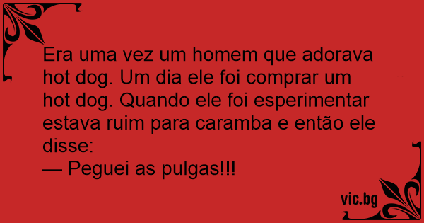 Era uma vez um homem que adorava hot dog. Um dia ele foi comprar um hot dog. Quando ele foi esperimentar estava ruim para caramba e então ele disse: