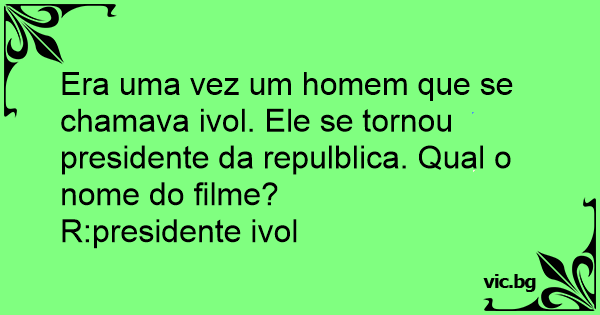 Era uma vez um homem que se chamava ivol. Ele se tornou presidente da repulblica. Qual o nome do filme?