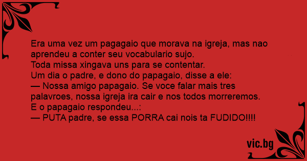 Era uma vez um pagagaio que morava na igreja, mas nao aprendeu a conter seu vocabulario sujo.