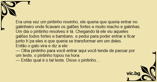 — Então qual é o tal теsте. Disse o pintinho.