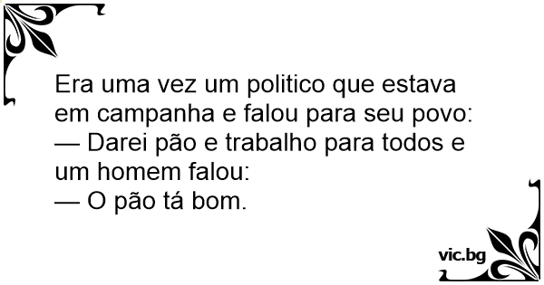 Era uma vez um politico que estava em campanha e falou para seu povo: