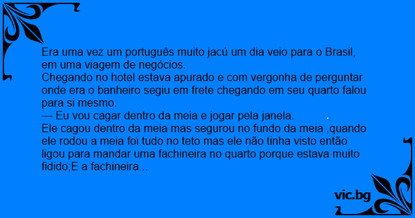 Era uma vez um português muito jacú um dia veio para o Brasil, em uma viagem de negócios.