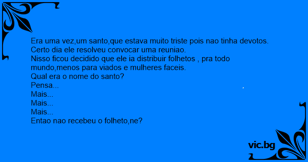 Era uma vez,um santo,que estava muito triste pois nao tinha devotos.