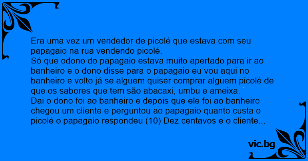 Era uma vez um vendedor de picolé que estava com seu papagaio na rua vendendo picolé.