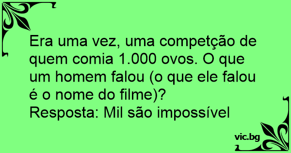 Era uma vez, uma competção de quem comia 1.000 ovos. O que um homem falou (o que ele falou é o nome do filme)?