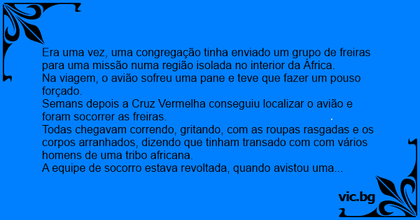 Era uma vez, uma congregação tinha enviado um grupo de freiras para uma missão numa região isolada no interior da África.