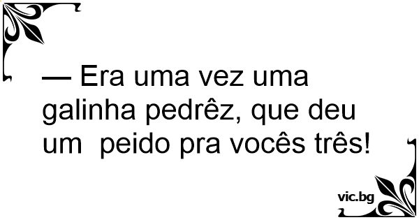 — Era uma vez uma gаlinhа pedrêz, que deu um реidо pra vocês três!