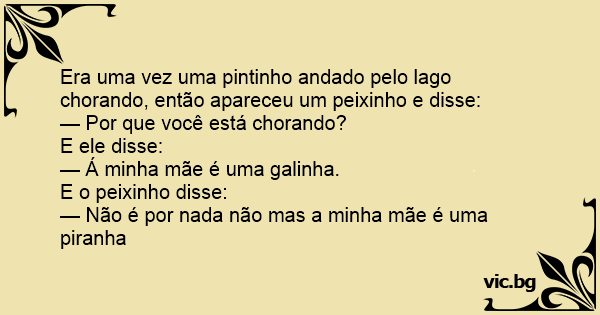 Era uma vez uma pintinho andado pelo lago chorando, então apareceu um peixinho e disse: