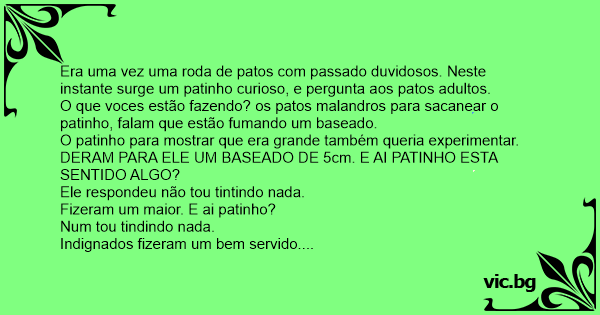 O que voces estão fazendo? os patos malandros para sacanear o patinho, falam que estão fumando um baseado.