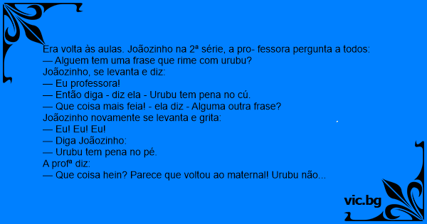 — Urubu tem pena no pé, porque no cú a professora não qué!