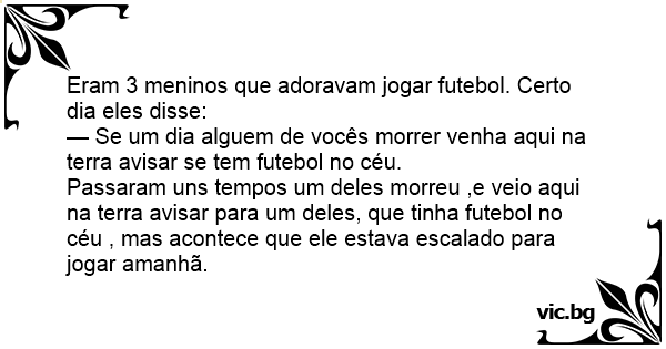 — Se um dia alguem de vocês morrer venha aqui na terra avisar se tem futebol no céu.