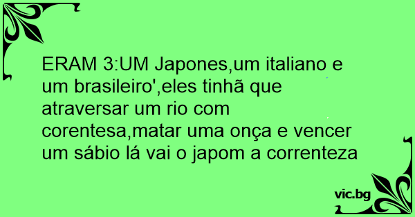ERAM 3:UM Japones,um italiano e um brasileiro',eles tinhã que atraversar um rio com corentesa,matar uma onça e vencer um sábio lá vai o japom a correnteza