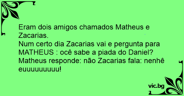 Num certo dia Zacarias vai e pergunta para MATHEUS : ocê sabe a piada do Daniel?