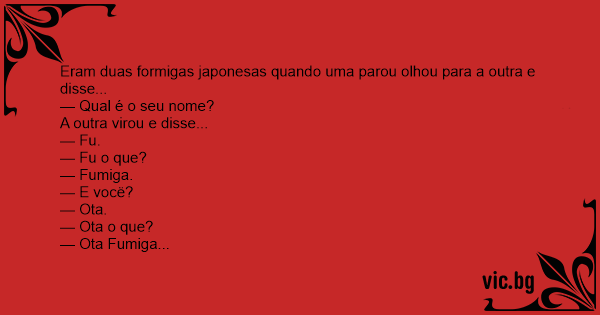 Eram duas formigas japonesas quando uma parou olhou para a outra e disse...