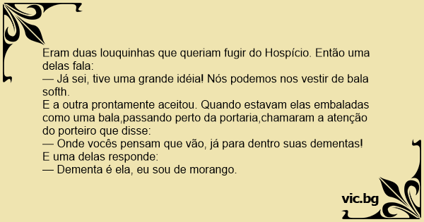 Eram duas louquinhas que queriam fugir do Hospício. Então uma delas fala: