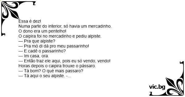 O caipira foi no mercadinho e pediu alpiste.