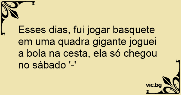 Esses dias, fui jogar basquete em uma quadra gigante joguei a bola na cesta, ela só chegou no sábado '-'
