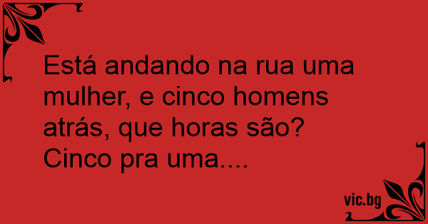 Está andando na rua uma mulher, e cinco homens atrás, que horas são?