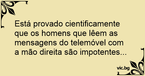 Está provado cientificamente que os homens que lêem as mensagens do telemóvel com a mão direita são impotentes...