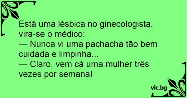 Πάει η λεσβία στον γυναικολόγο. Την εξετάζει προσεκτικά και της λέει: - Κυρία μου, έχετε τον πιο καθαρό κόλπο που έχω δει στην καριέρα μου. - Ε, τι να γίνει γιατρέ μου, παίρνω γυναίκα κάθε μέρα.