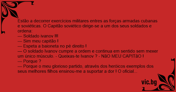 — O soldado Ivanov cumpre a ordem e continua em sentido sem mexer um único músculo. - Queixas-te Ivanov ? - NãO MEU CAPITãO !
