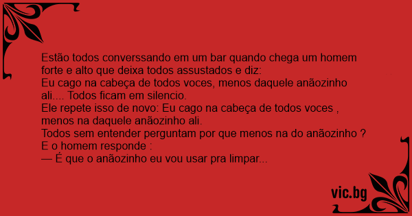 Eu cago na cabeça de todos voces, menos daquele anãozinho ali.... Todos ficam em silencio.