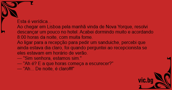 — "Ah é? E a que horas começa a escurecer?"