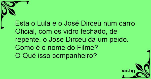 Esta o Lula e o José Dirceu num carro Oficial, com os vidro fechado, de repente, o Jose Dirceu da um реidо.