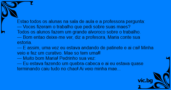 — Bom entao deixe-me ver, diz a profesora, Maria conte sua estoria.