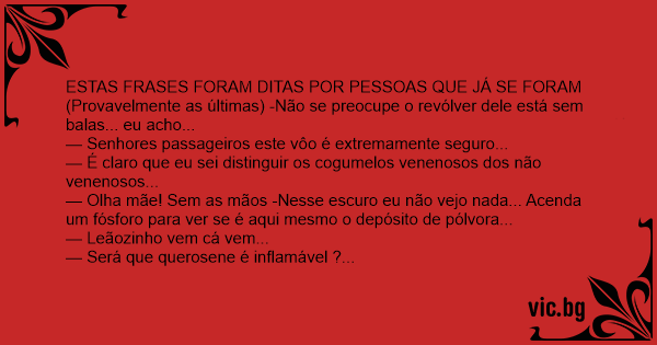 ESTAS FRASES FORAM DITAS POR PESSOAS QUE JÁ SE FORAM (Provavelmente as últimas) -Não se preocupe o revólver dele está sem balas... eu acho...