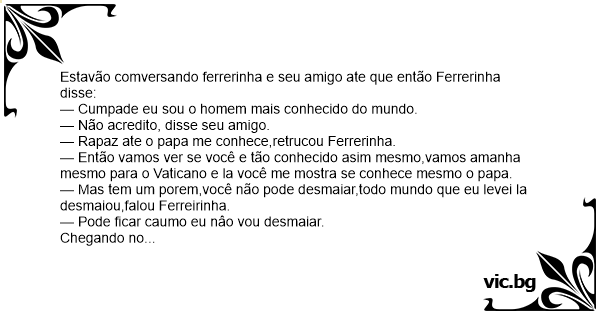 — Rapaz ate o papa me conhece,retrucou Ferrerinha.