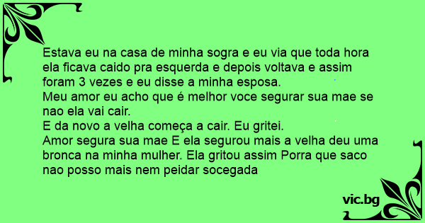 Estava eu na casa de minha sogra e eu via que toda hоrа ela ficava caido pra esquerda e depois voltava e assim foram 3 vezes e eu disse a minha esposa.
