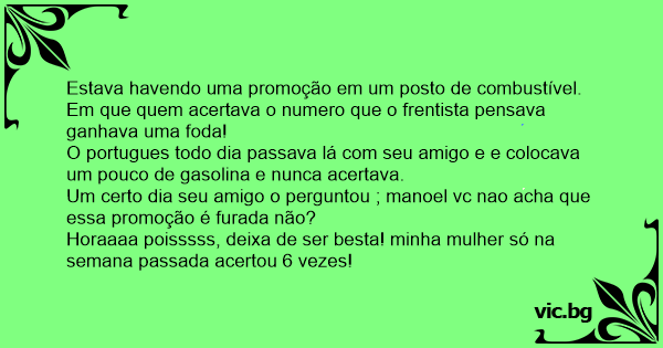 O portugues todo dia passava lá com seu amigo e e colocava um pouco de gasolina e nunca acertava.