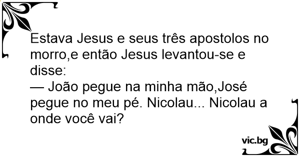 Estava Jesus e seus três apostolos no morro,e então Jesus levantou-se e disse: