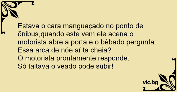 Estava o cara manguaçado no ponto de õnibus,quando este vem ele acena o motorista abre a porta e o bêbado pergunta: