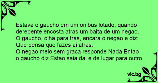 O negao meio sem graca responde Nada Entao o gaucho diz Estao saia dai e de lugar para outro