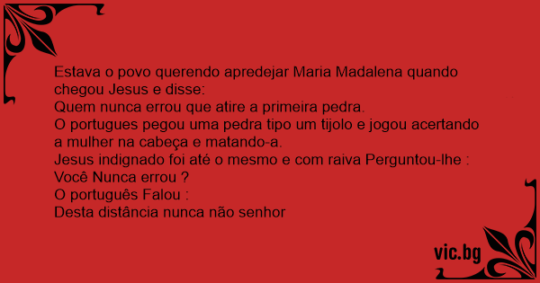 Estava o povo querendo apredejar Maria Madalena quando chegou Jesus e disse:
