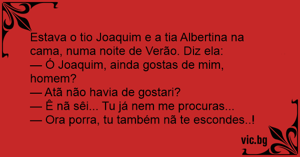 Estava o tio Joaquim e a tia Albertina na cama, numa noite de Verão. Diz ela: