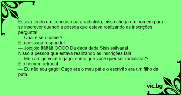 Estava tendo um concurso para radialista, nisso chega um homem para se inscrever quando a pessoa que estava realizando as inscrições pergunta!