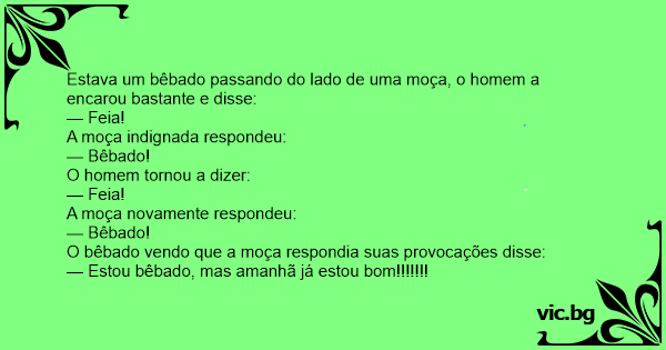 Estava um bêbado passando do lado de uma moça, o homem a encarou bastante e disse: