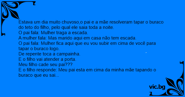 E o filho responde: Meu pai esta em cima da minha mãe tapando o buraco que eu sai...