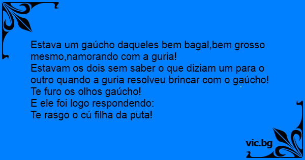 Estava um gaúcho daqueles bem bagal,bem grosso mesmo,namorando com a guria!