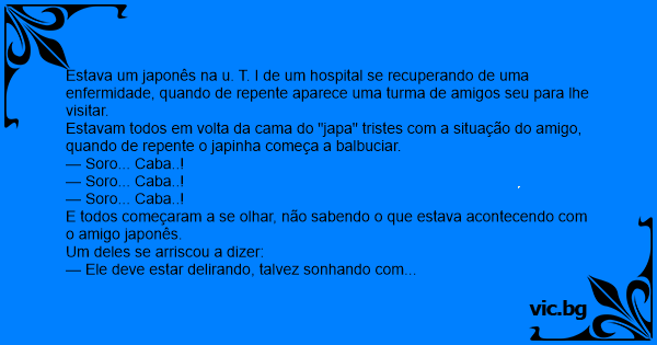 Estavam todos em volta da cama do "japa" tristes com a situação do amigo, quando de repente o japinha começa a balbuciar.